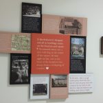 I spent a fascinating day with Kate, exploring the treasury of maps, medical formularies, housekeeping records, deeds and seals that the archive holds, and developing themes. Julie then took the project through from concept to completion, designing a colourful and uplifting wall display that groups stories and images from centuries marked on the handrail.
